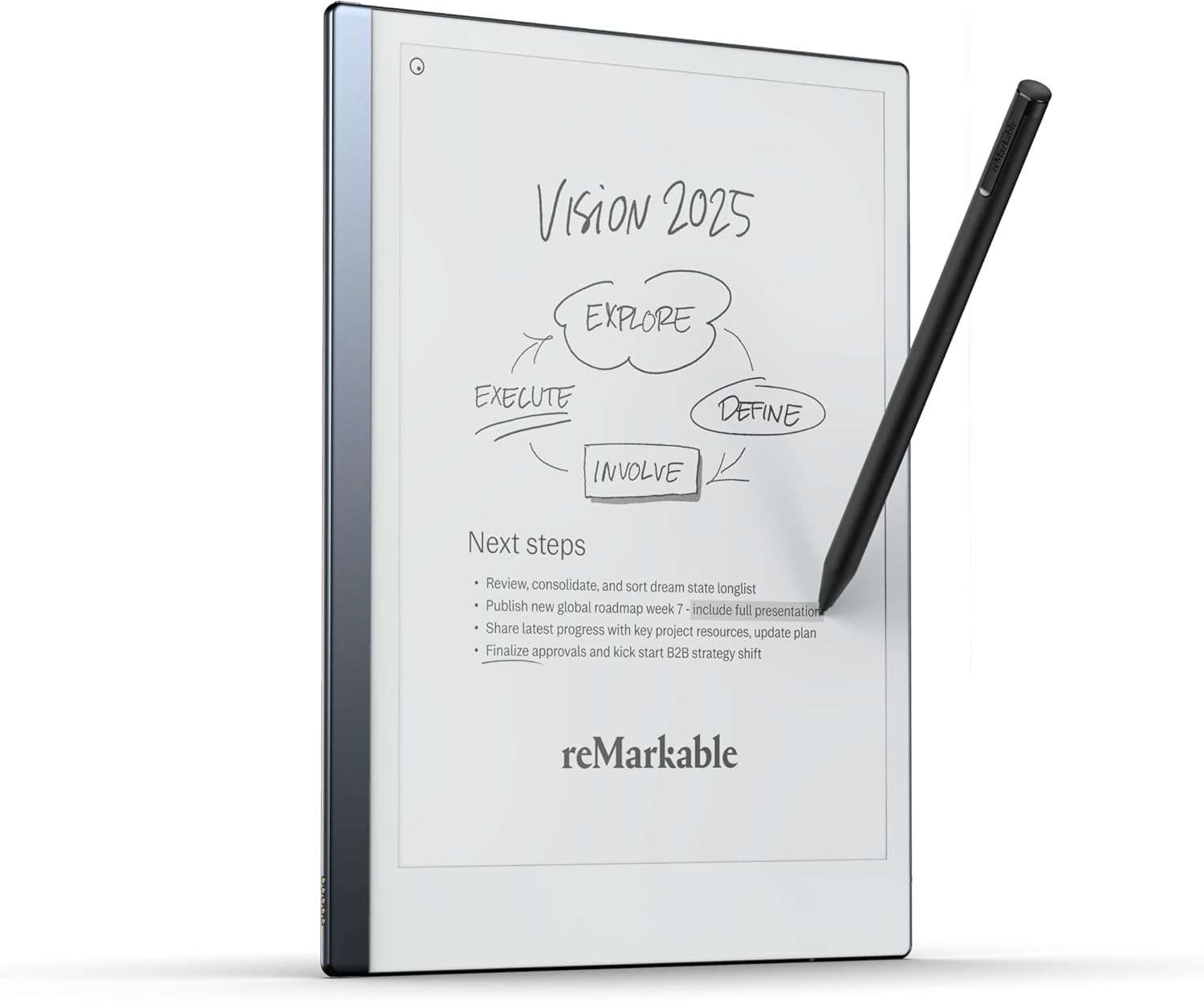 reMarkable 2 offers a paper-like writing experience with a 10.3″ black and white display, designed for note-taking, reading, and reviewing documents.