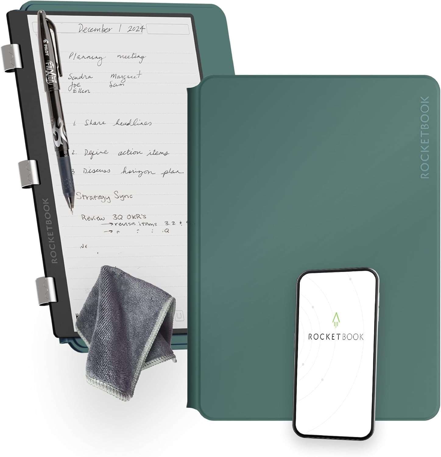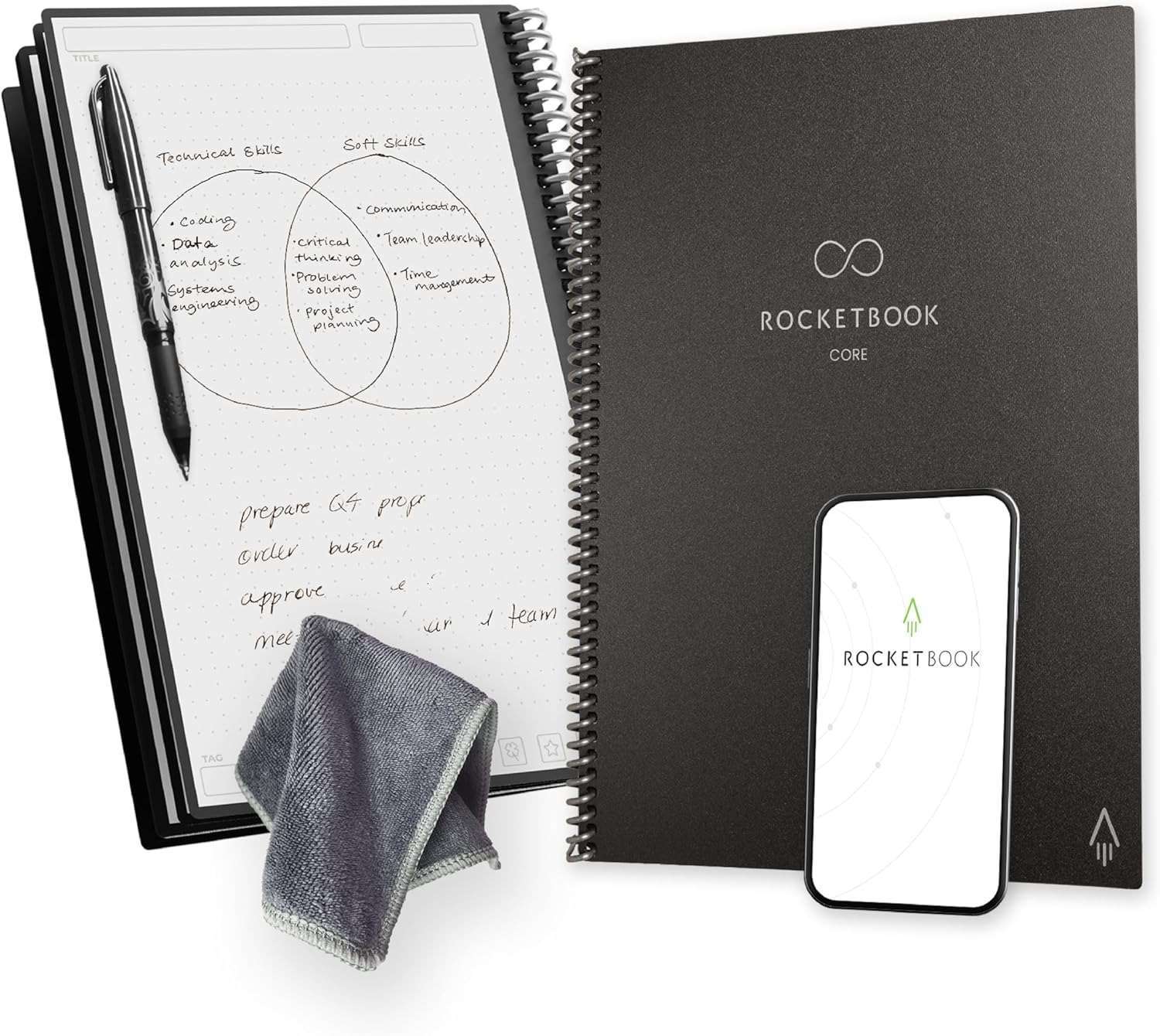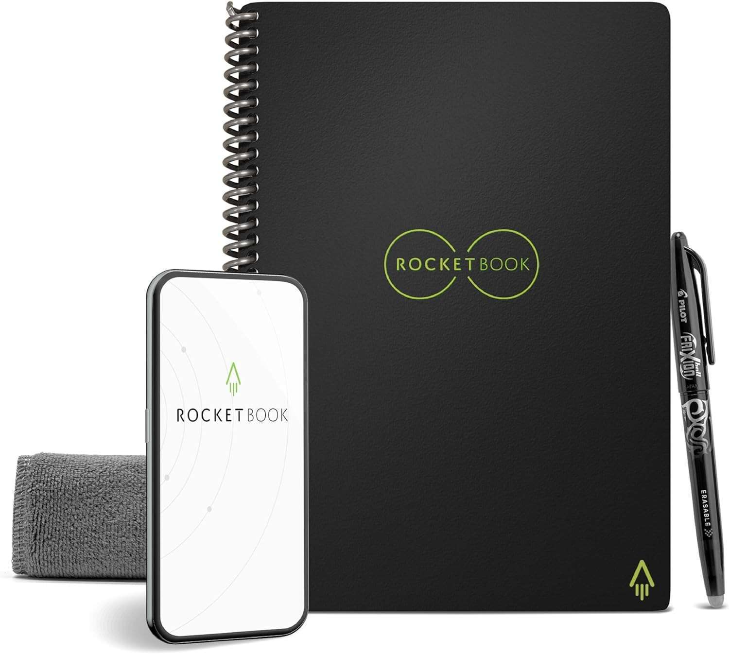 Write with the included FriXion erasable gel pen, digitize notes using the Rocketbook app, then simply wipe clean with a damp cloth for endless reusability.