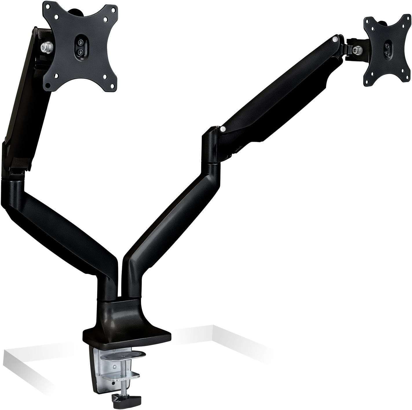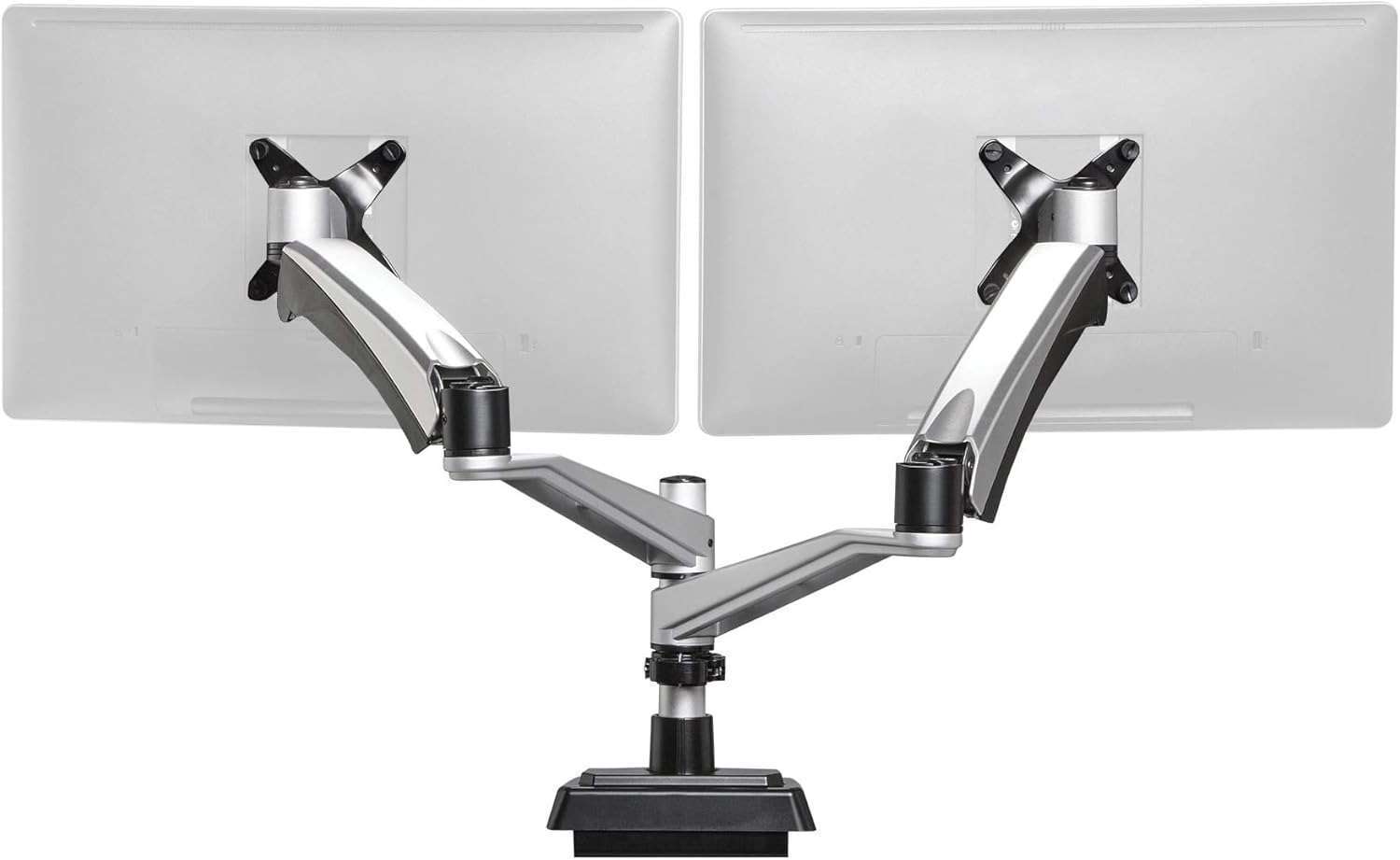 Handles two 13–32 inch monitorsGas spring arms for easy positioning