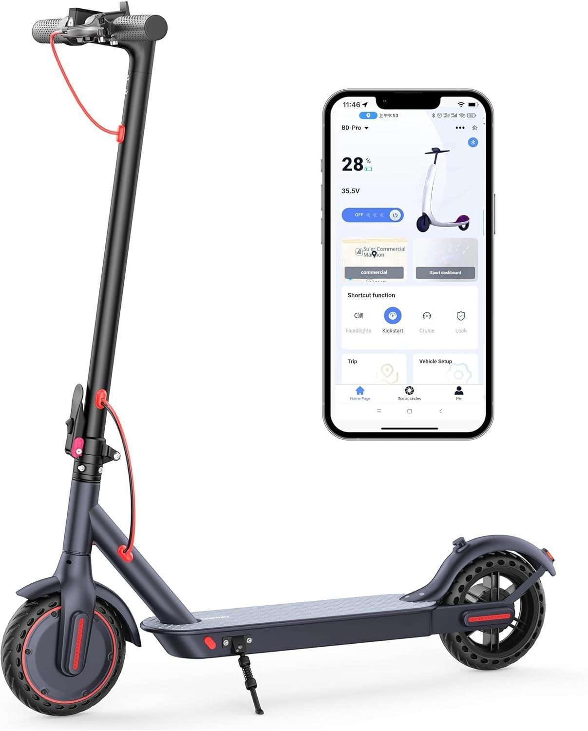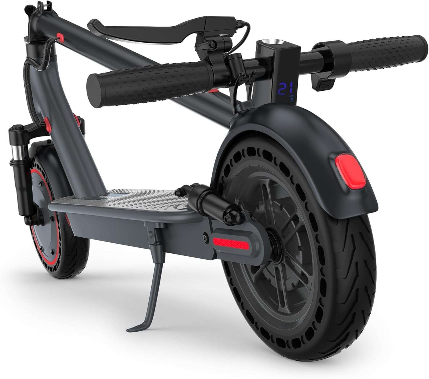 18-mile range and 18 mph top speed, perfect for short commutes.Equipped with 8.5″ solid tires, no puncture worry.
