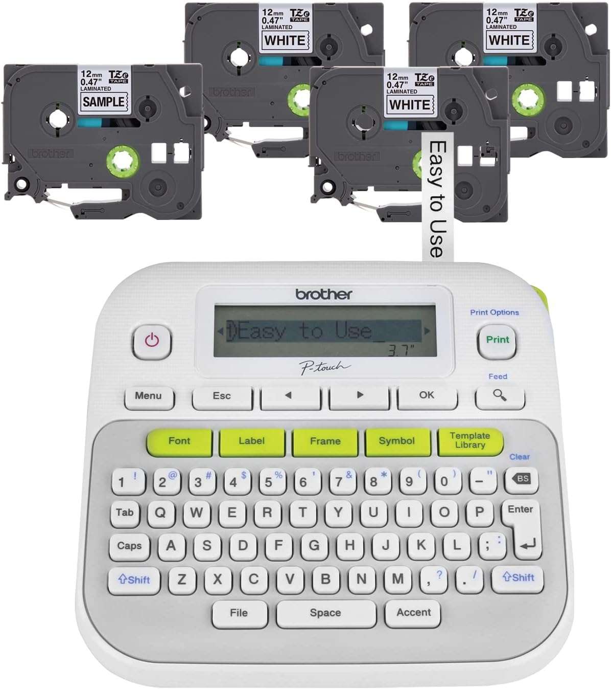 Print Method & Connectivity: Laminated printing with USB connection.Label Materials & Sizes: Creates durable, 12mm laminated labels.