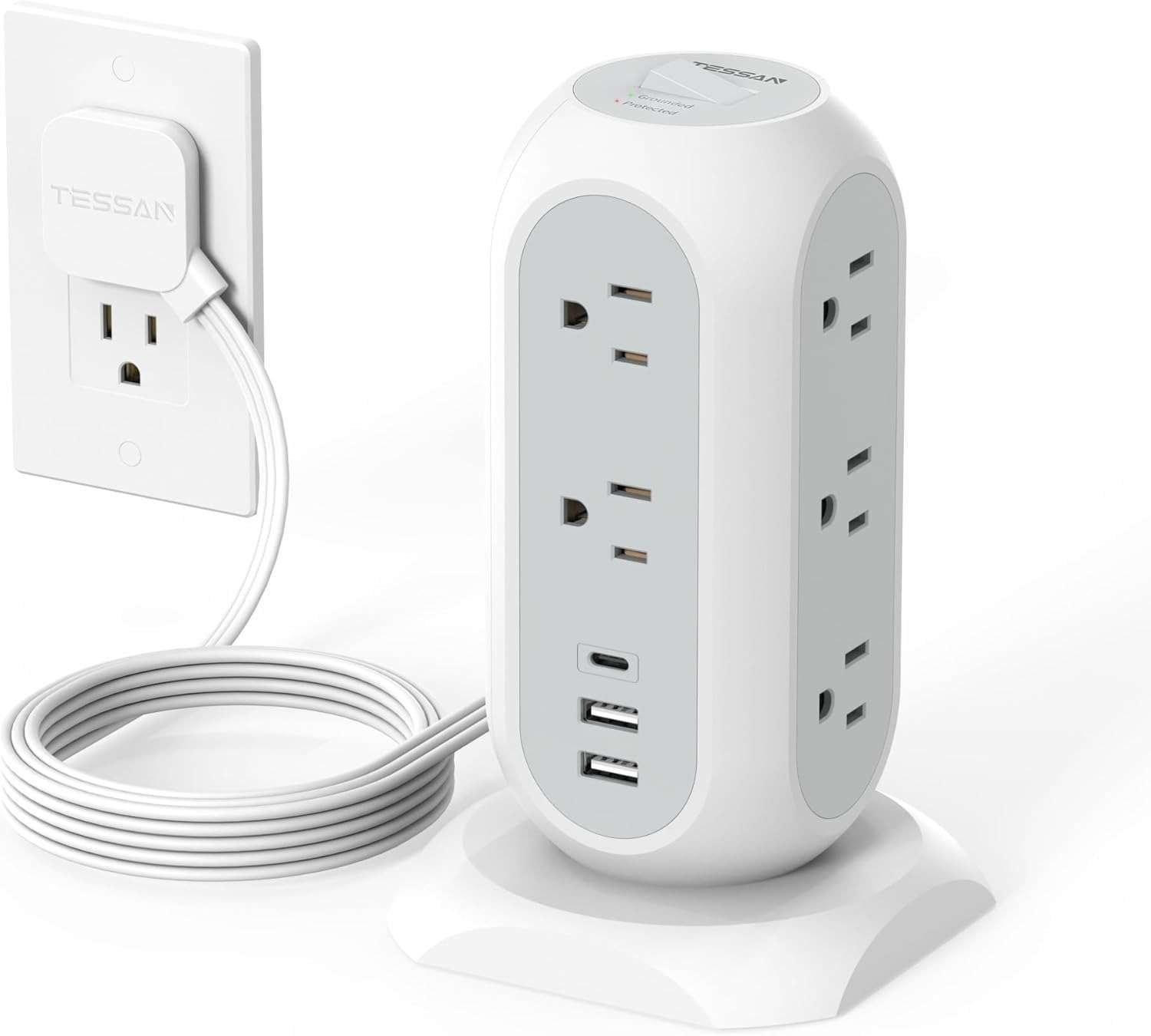 TESSAN Tower Surge Protector Power Strip 10 ft, Long Flat