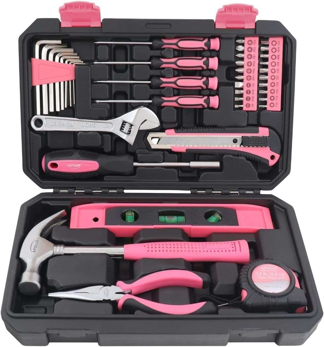 75-piece set with basic hand tools for general household repairs.Includes screwdrivers, pliers, hammer, tape measure, and more.