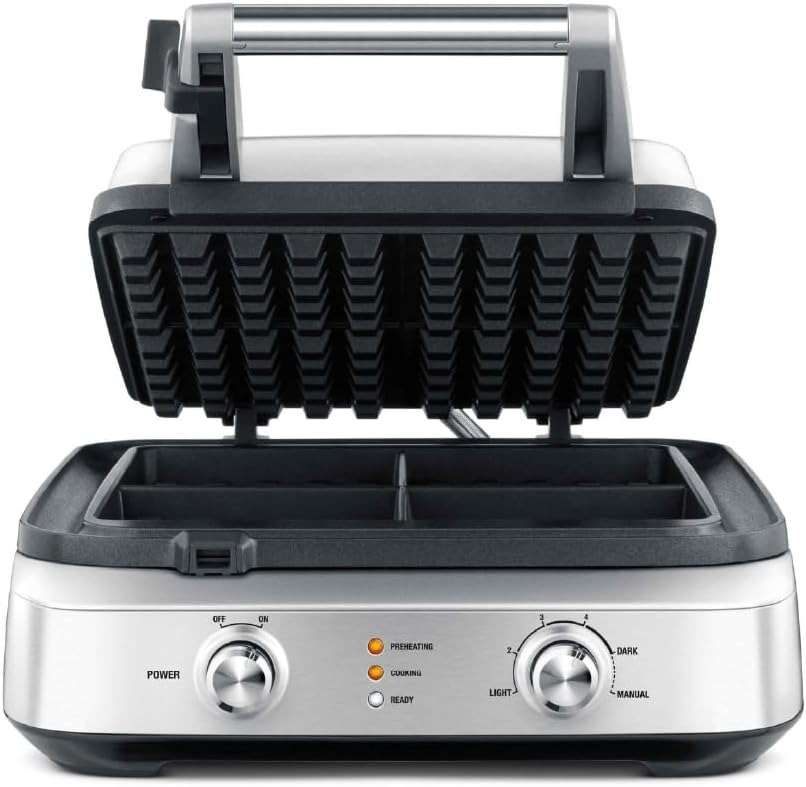 Cooking Performance & Design: Cooks 4-inch snack-sized waffles.Customization & Control: Built-in pan readiness indicator light.