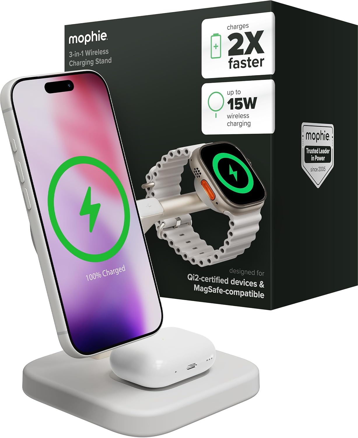 Charges iPhone, Apple Watch, and AirPods simultaneously with ease.