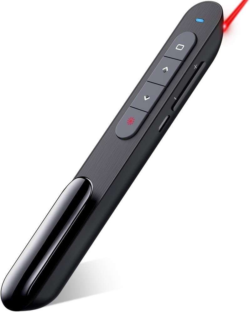 Long-range control up to 50ft.Red laser pointer for effective highlighting.